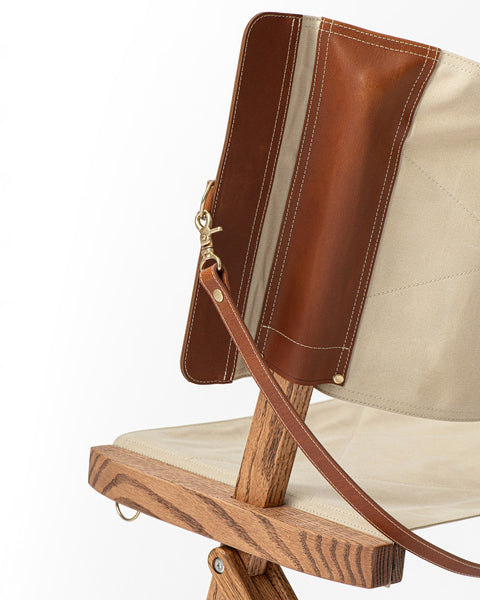 是在收納袋(兼椅背)兩端多了皮革飾邊與皮製手把